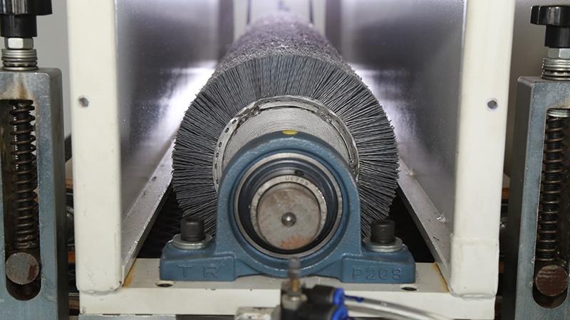 - Cada rodillo rusticador cuenta con un motor independiente para garantizar que el diseño de grano de madera se resalte eficazmente.